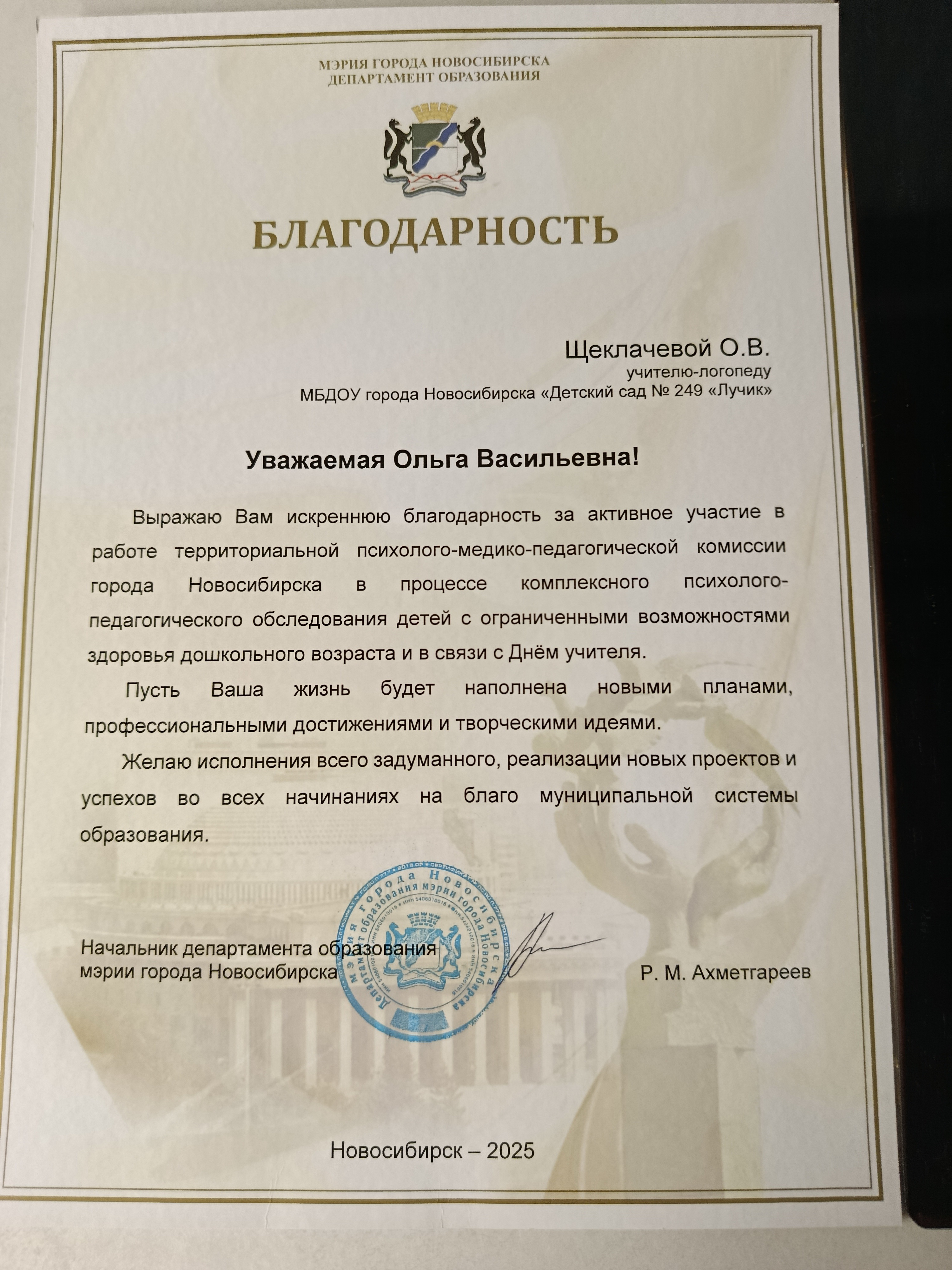 Благодарность МБУ ДПО "ГЦОиЗ "Магистр"
